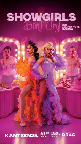 Drag Race Holland-sterren My Little Puny en Keta Minaj brengen een unieke voorstelling die verder gaat dan entertainment. Dit is drag als expressie, verzet en soms pure overleving. We vieren drag als kunstvorm, maar tonen ook de kwetsbaarheid die daarachter schuilgaat. Showgirls Don’t Cry is een ode aan queerness, trots en gekozen familie — een voorstelling die juist nú gezien moet worden. We nemen je mee backstage, voorbij de glitter en achter de make-up, en laten je voelen wat het betekent om buiten de norm te bestaan.